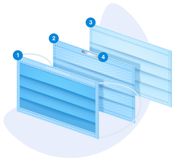 - 1. Outer Blue Layer - Hydrophobic non-woven Layer